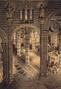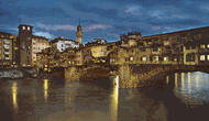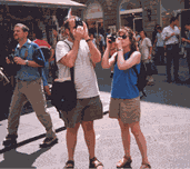 This may seem like a bit of a jump -- well, it was: after Paris we hopped on a train all the way down to Sienna, Italy. We had Eurail Passes, and people to meet all over Europe in strange patterns. This is our favorite church (architecturally, I mean), the Duomo in Sienna. There, we met my best buddy from high school, Eric (now owns a nice health-food supermarket in Richmond Va.), and his new wife -- actually on their honeymoon (pictured here taking pictures). The four of us roamed all over Sienna, and the next day all over Florence together. We had a great time with Eric and Maxine, and, if I may say so, I think we helped them get their marriage off to a good start. We crossed over this ancient famous bridge (over the river Arno), and, yes, we saw the famous David, among many other