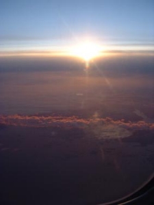 begins with a plane trip. Here, at the right, you see me heading out over the